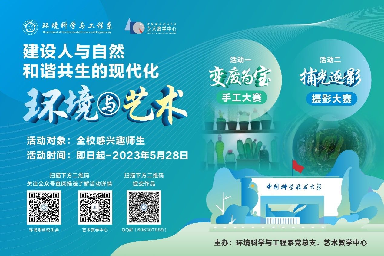每年的65日为世界环境日,中国2023年六五环境日主题是“建设人与自然和谐共生的现代化”。为深入学习贯彻党的二十大精神和习近平总书记关于生态文明建设的重要论述精神,推动“绿水青山就是金山银山”的生态理念深入人心,在六五环境日即将来临之际,环境科学与工程系党总支联合艺术教学中心举办“建设人与自然和谐共生的现代化——环境与艺术”系列活动。